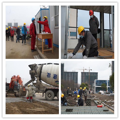 時(shí)間緊,任務(wù)重。集團(tuán)公司和各分公司緊急動員,擬定施工方案、聯(lián)系施工機(jī)械……,從號召到集結(jié),僅僅2小時(shí),100多名管理和施工人員全部到位,40多臺套施工機(jī)械有序進(jìn)場,設(shè)計(jì)、施工、材料采購和各項(xiàng)調(diào)度同步推進(jìn)。然而,集裝箱板房材料生產(chǎn)廠家遠(yuǎn)在千里之外,沒有上級文件通知不能復(fù)工,春節(jié)假期在廠工人少,運(yùn)輸車輛不愿意去湖北等等一系列問題擺在面前。但是,公司總經(jīng)理張大華想千方、設(shè)百計(jì),為生產(chǎn)廠家排憂解難,最終使得集裝箱板房材料及時(shí)運(yùn)達(dá)施工現(xiàn)場。