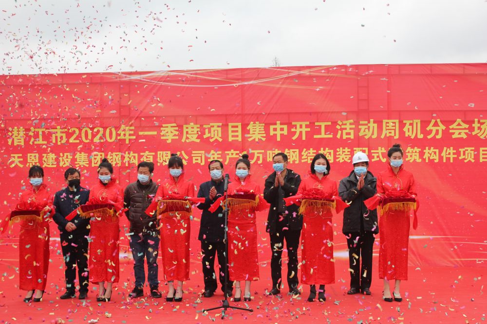 與此同時,天恩集團鋼結構裝配式建筑項目在潛江市周磯辦事處分會場開工。該項目占地面63.43畝,總投資1億元。預計2020年12月建成投產,屆時將創(chuàng)造長期性就業(yè)崗位300個,新增工業(yè)產值2億元,為打造潛江綠色建筑產業(yè)園和推動地方經濟社會快速發(fā)展作出積極貢獻。