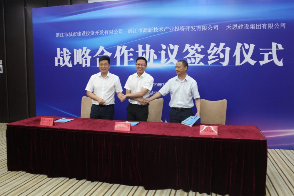 2019年7月3日上午,天恩建設(shè)集團(tuán)有限公司與潛江市城市建設(shè)投資開發(fā)有限公司、潛江市高新技術(shù)產(chǎn)業(yè)投資開發(fā)有限公司三方共同合作,在七喜國際大酒店舉行裝配式建筑戰(zhàn)略合作框架協(xié)議簽約儀式。